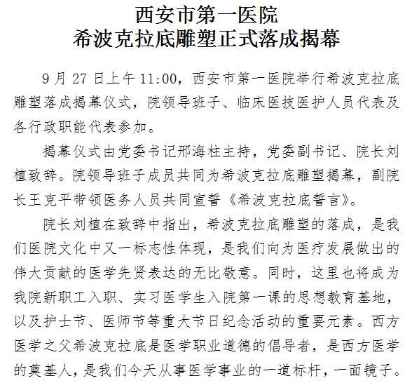 男同视频 希波克拉底雕塑正式落成揭幕