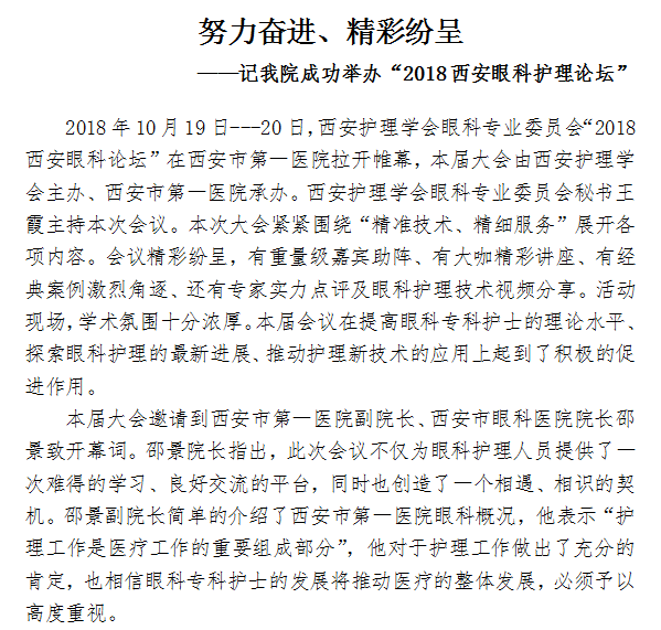 记男同视频 成功举办“2018西安眼科护理论坛”