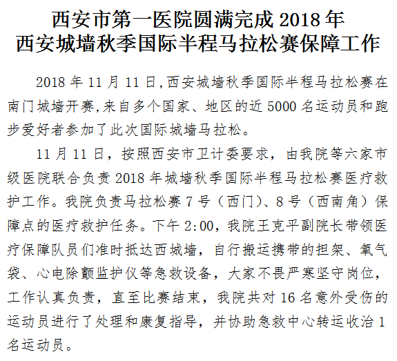 男同视频 圆满完成2018年 西安城墙秋季国际半程马拉松赛保障工作