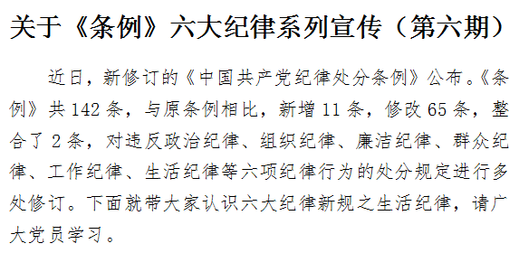 关于《条例》六大纪律系列宣传(第六期)