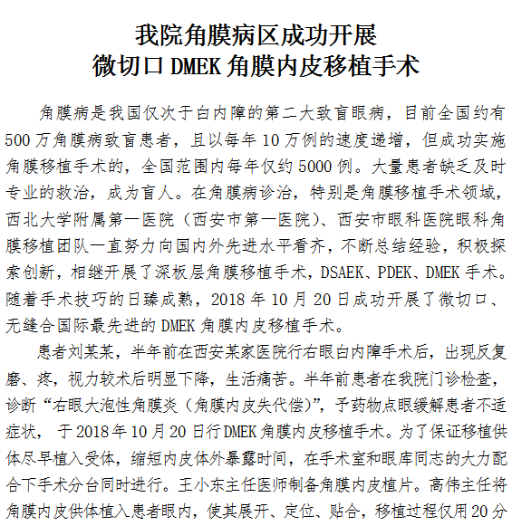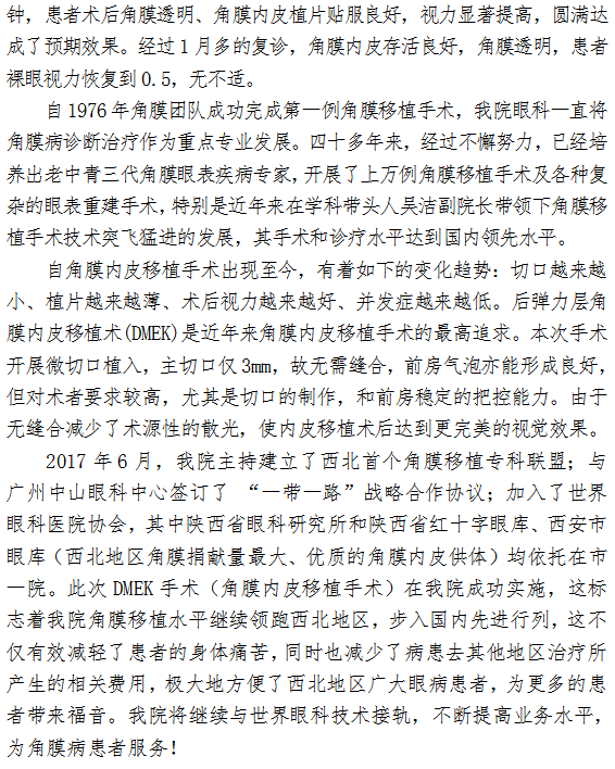 男同视频 角膜病区成功开展微切口DMEK角膜内皮移植手术