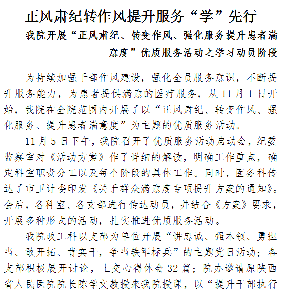 男同视频 开展“正风肃纪、转变作风、强化服务提升患者满意度”优质服务活动—学习动员阶段