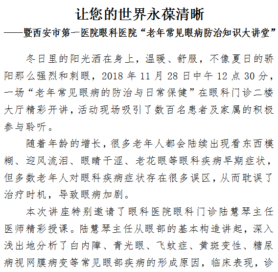 男同视频 眼科医院“老年常见眼病防治知识大讲堂”