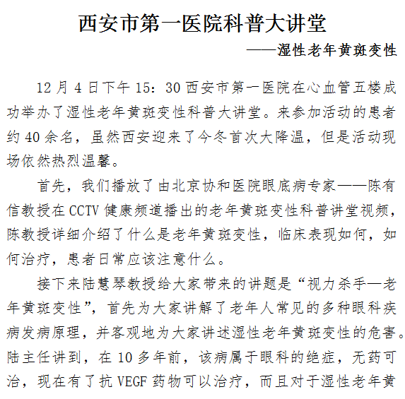 男同视频 科普大讲堂——湿性老年黄斑变性