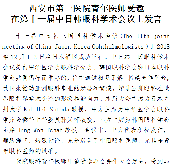男同视频 青年医师受邀在第十一届中日韩眼科学术会议上发言