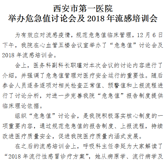 男同视频 举办危急值讨论会及2018年流感培训会
