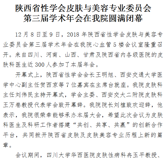 陕西省性学会皮肤与美容专业委员会第三届学术年会在男同视频 圆满闭幕