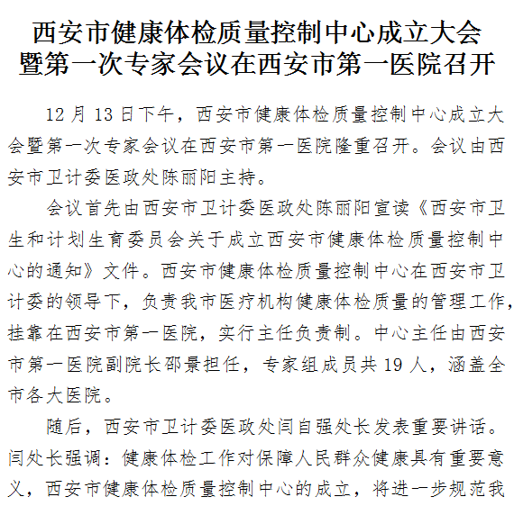 西安市健康体检质量控制中心成立大会暨第一次专家会议在男同视频 召开