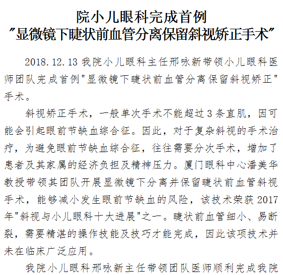 男同视频 小儿眼科完成首例显微镜下睫状前血管分离保留斜视矫正手术