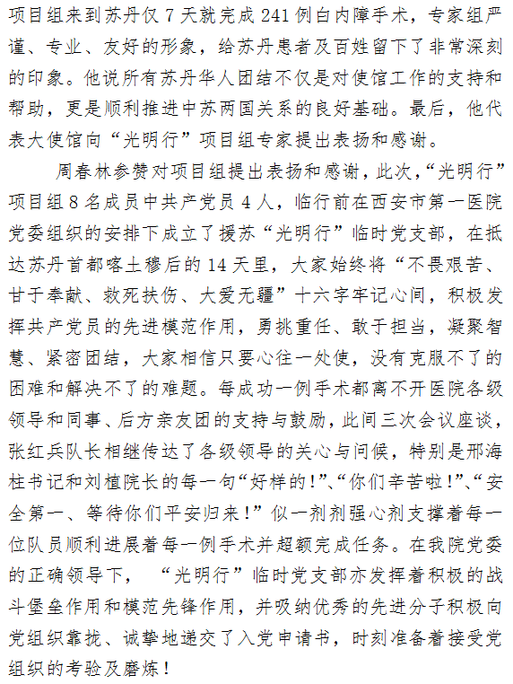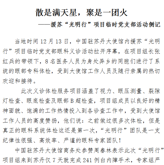 散是满天星,聚是一团火 ——援苏“光明行”项目临时党支部活动侧记