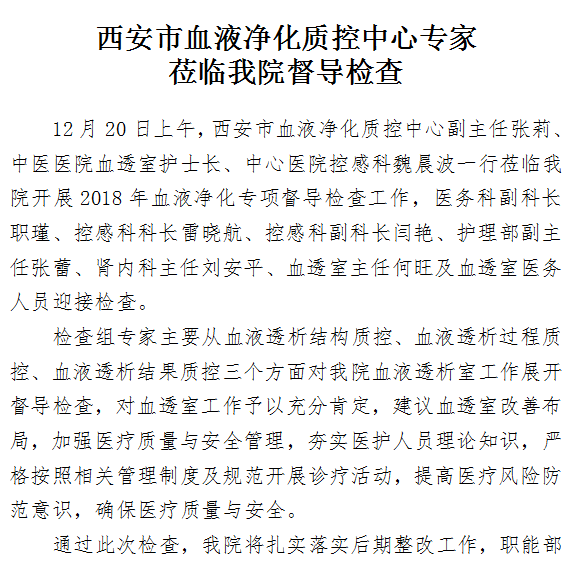 西安市血液净化质控中心专家莅临男同视频 督导检查