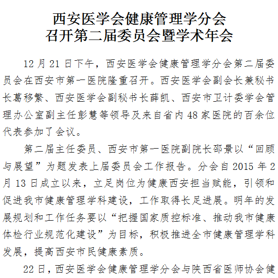西安医学会健康管理学分会召开第二届委员会暨学术年会