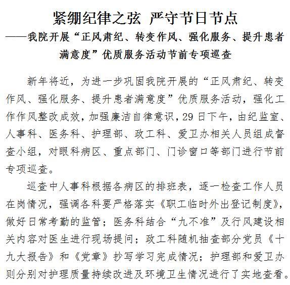 男同视频 开展“正风肃纪、转变作风、强化服务、提升患者满意度”优质服务活动节前专项巡查