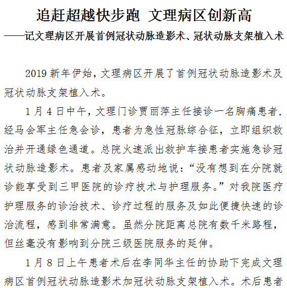 记文理病区开展首例冠状动脉造影术、冠状动脉支架植入术