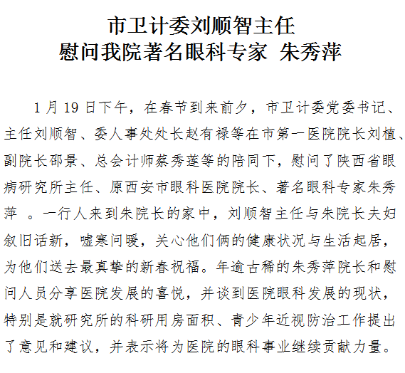 市卫计委刘顺智主任慰问男同视频 著名眼科专家朱秀萍