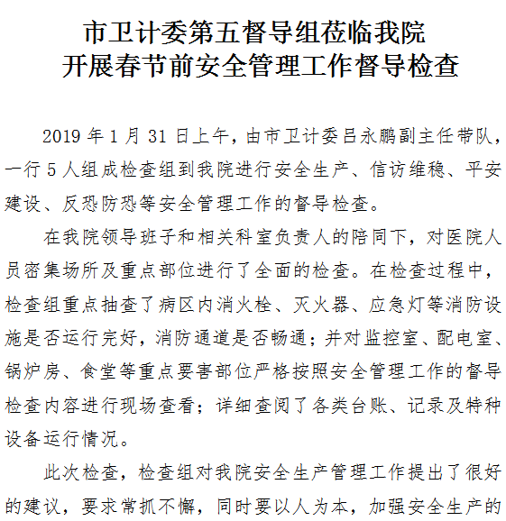 市卫计委第五督导组莅临男同视频 开展春节前安全管理工作督导检查