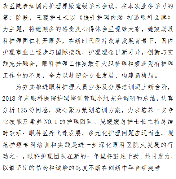 一年之计在于春——2019眼科医院护理业务学习第一期