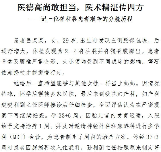 医德高尚敢担当,医术精湛传四方——记一位脊柱裂患者艰辛的分娩历程