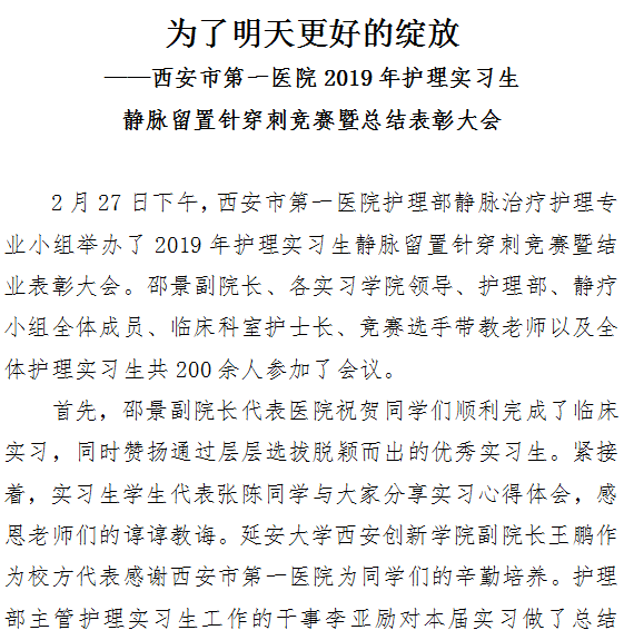 为了明天更好的绽放——男同视频 2019年护理实习生静脉留置针穿刺竞赛暨总