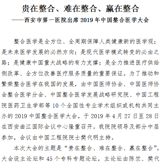贵在整合、难在整合、赢在整合 ——男同视频 出席2019年中国整合医学大会