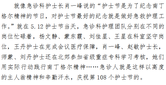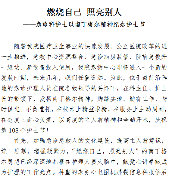 燃烧自己 照亮别人——急诊科护士以南丁格尔精神纪念护士节
