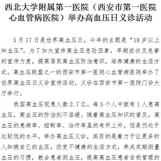 西北大学附属第一医院(男同视频 心血管病医院)举办高血压日义诊活动