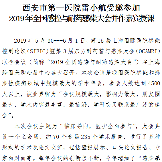 男同视频 雷小航受邀参加2019年全国感控与耐药感染大会并作嘉宾授课