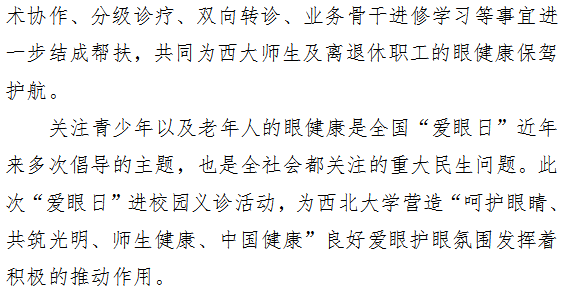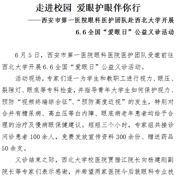 市一院眼科医护团队赴西北大学开展6.6全国“爱眼日”公益义诊活动