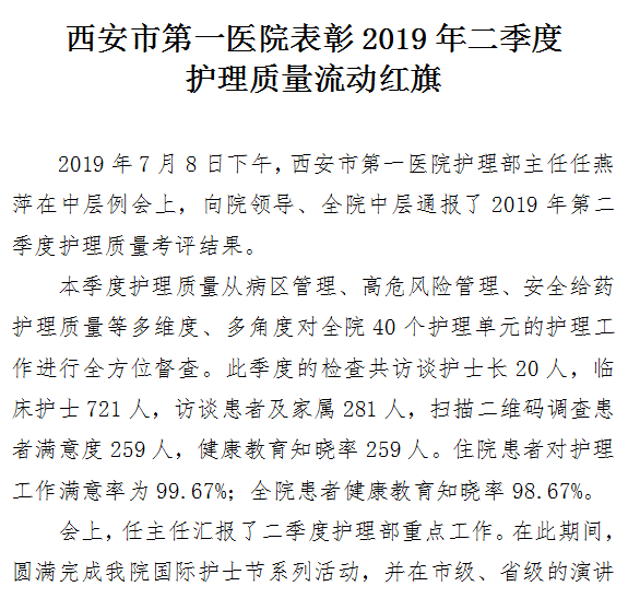 男同视频 表彰2019年二季度 护理质量流动红旗