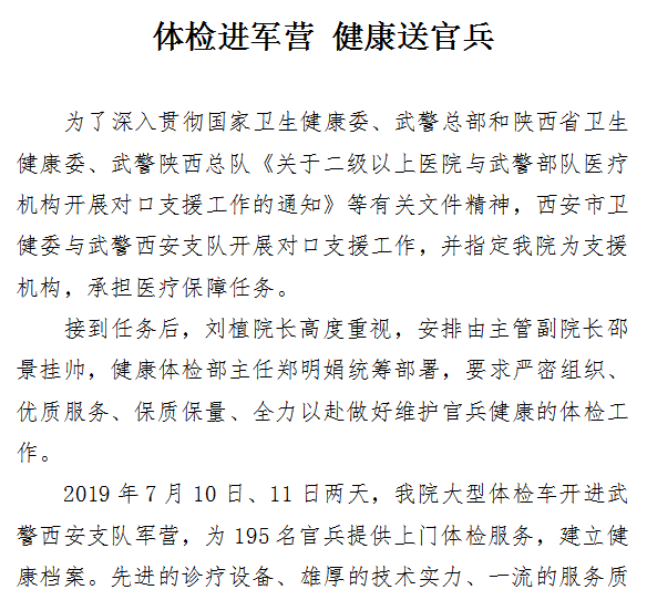 体检进军营 健康送官兵