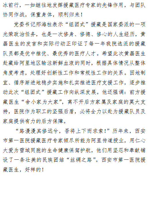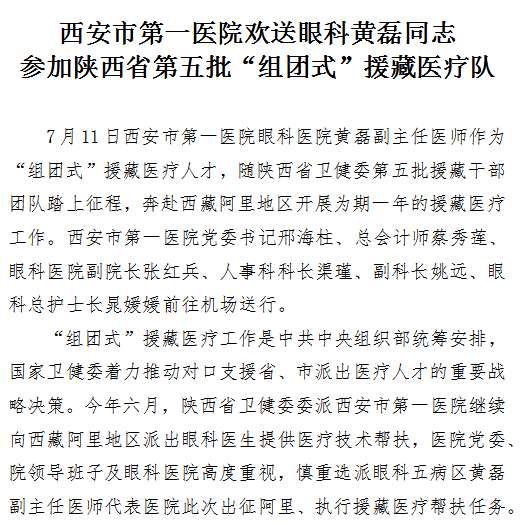 男同视频 欢送眼科黄磊同志参加陕西省第五批“组团式”援藏医疗队