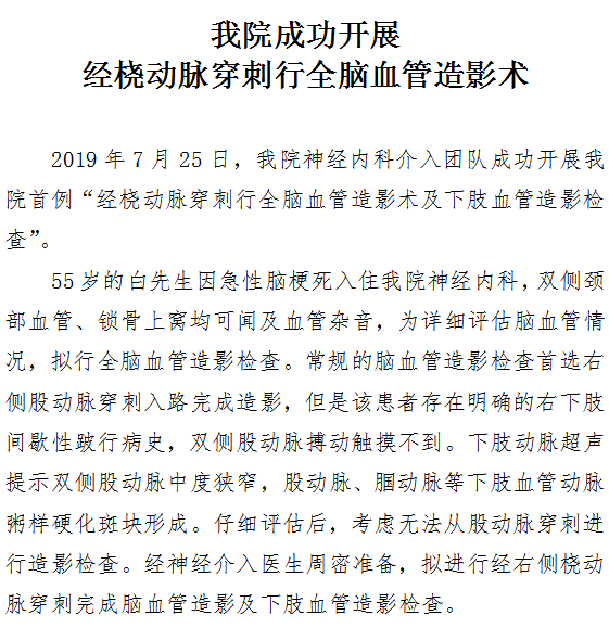男同视频 成功开展 经桡动脉穿刺行全脑血管造影术