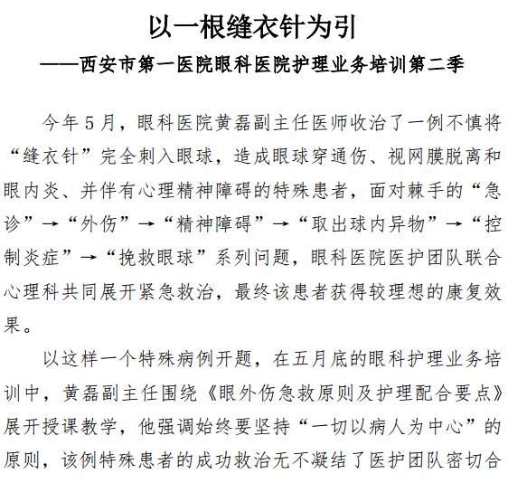 以一根缝衣针为引——男同视频 眼科医院护理业务培训第二季