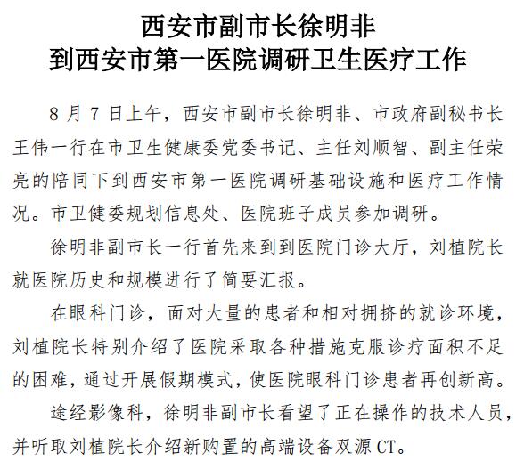 西安市副市长徐明非到男同视频 调研卫生医疗工作