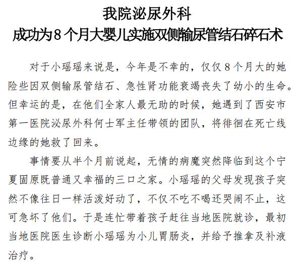 男同视频 泌尿外科成功为8个月大婴儿实施双侧输尿管结石碎石术