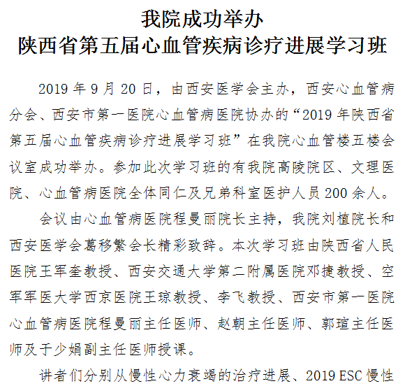 男同视频 成功举办陕西省第五届心血管疾病诊疗进展学习班