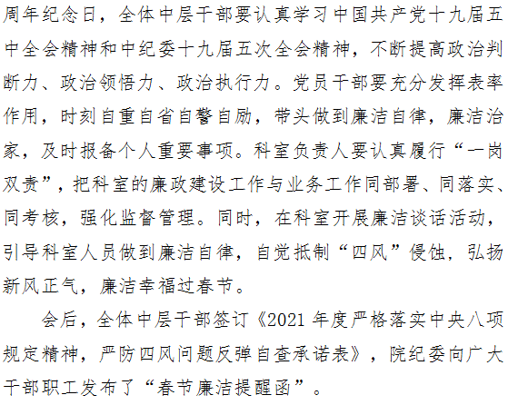 永葆清正廉洁 弘扬新风正气 ——2021年春节中层干部廉洁谈话会