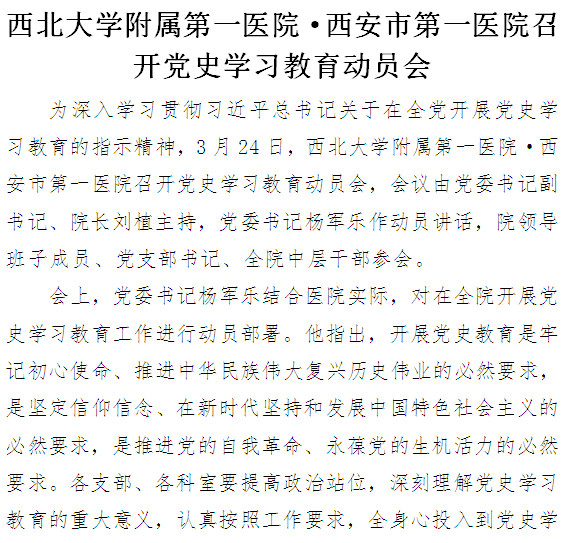 西北大学附属第一医院·男同视频 召开党史学习教育动员会