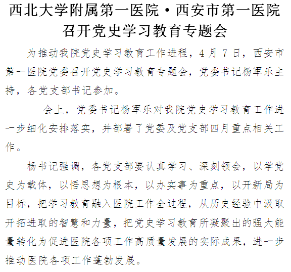 西北大学附属第一医院·男同视频 召开党史学习教育专题会
